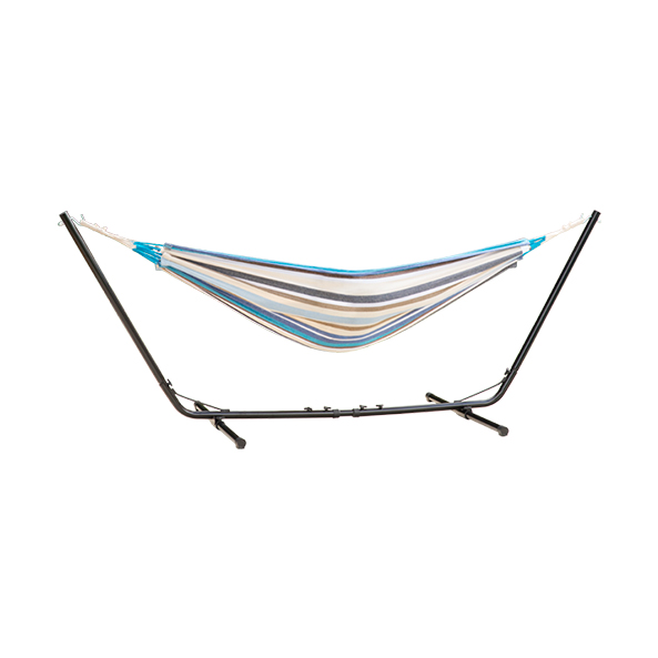 The double hammock kit comes complete with double hammock and adjustable frame for easy setup in any location whether at home or away.