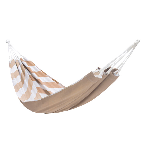 The Herringbone single sized hammock combines clean lines and neutral tones to create a calming, timeless design, with the reverse side a warmer taupe colour.