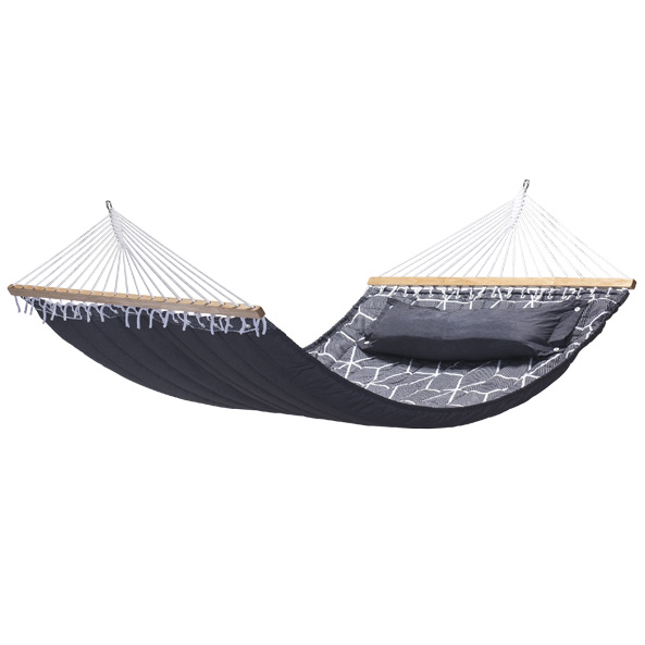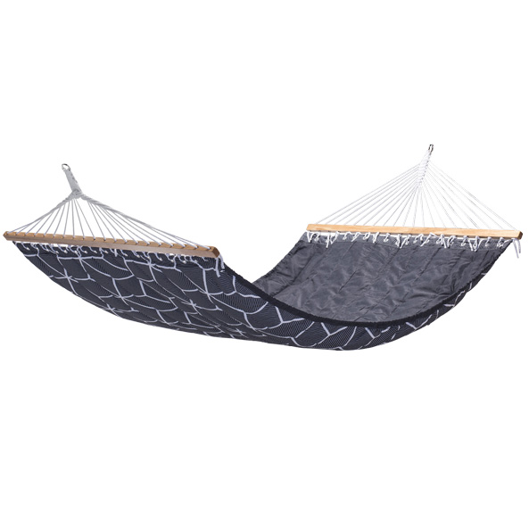 The quilted double rod hammock is available in a monochrome geometric floral print for a bold and stylish design, while the reverse side is a textured charcoal colour. This on trend hammock provides exceptional comfort and modern look that will compliment all outdoor spaces.